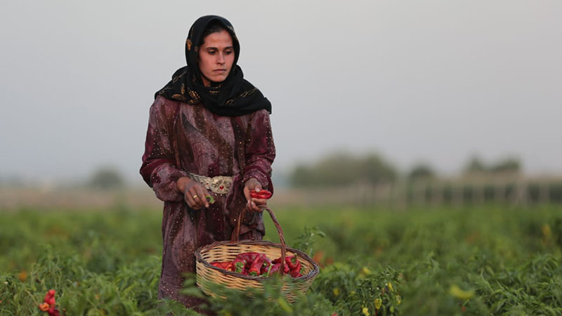 ardından eylül ayı başında hasat edilmeye başlanan kırmızı renkteki biberler,