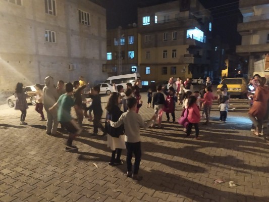 Sokağa çıkma yasağı ve sosyal mesafe kuralının ihlal edildiği sokakta müzikler eşliğinde eğlenceler yapıldı.