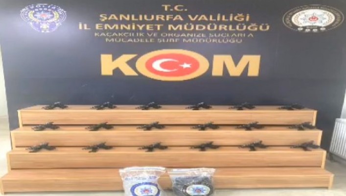 18 adet tabanca ve tabancalara ait 18 adet şarjör ele geçirildi.  3 şüpheli de gözaltına alındı. Emniyetteki işlemlerinin ardından 6136 SKM suçundan Şanlıurfa Cumhuriyet Başsavcılığına sevk edilen şüphelilerden 1'i tutuklanırken diğeri ise adli kontrol şartı ile serbest bırakıldı.
