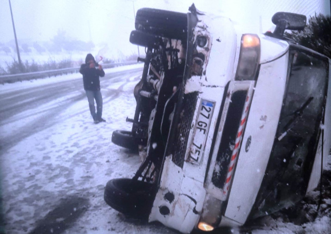 kar yağışı nedeniyle kayganlaşan yolda, henüz ismi öğrenilemeyen sürücüsünün