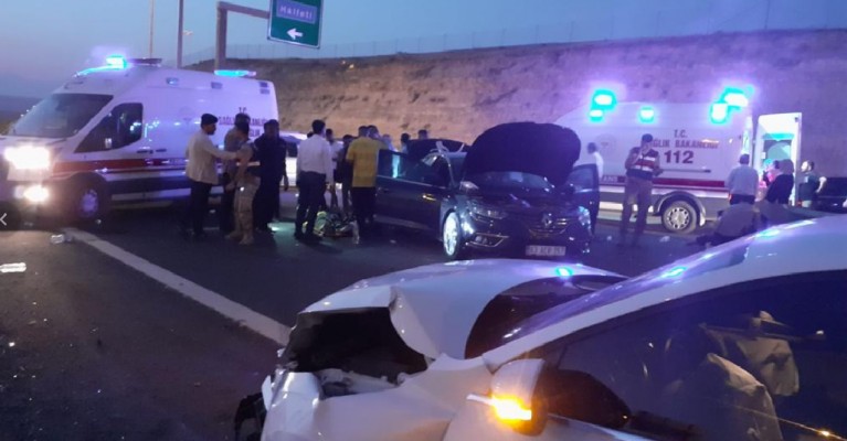 63 ACV 257 plakalı araç ile 02 AAY 382 plakalı araçlar çarpıştı. Korkunç kazada araçlar çarpışmanın etkisiyle yol kenarlarnına savurulurken ihbar üzerine olay yerine sağlık, itfaiye ve jandarma ekipleri sevk edildi. Olay yerine giden itfaiye ekipleri 3 kişiyi sıkıştıkları araçlardan kurtararak sağlık ekiplerine teslim edildi. Kazada 13 kişinin yaralandığı öğrenildi. Yaralılar ambulanslarla hastaneye kaldırıldı.