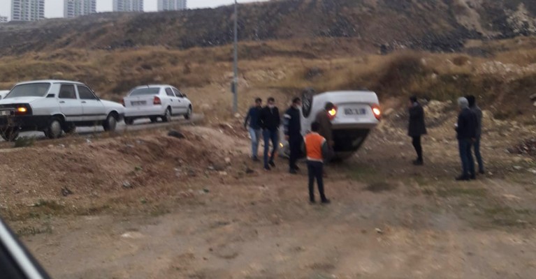 Akşam saatlerinde Fuar Merkezinin yanından Maşuk'a çıkan yolda yaşanan kazada, bir otomobil devrildi.