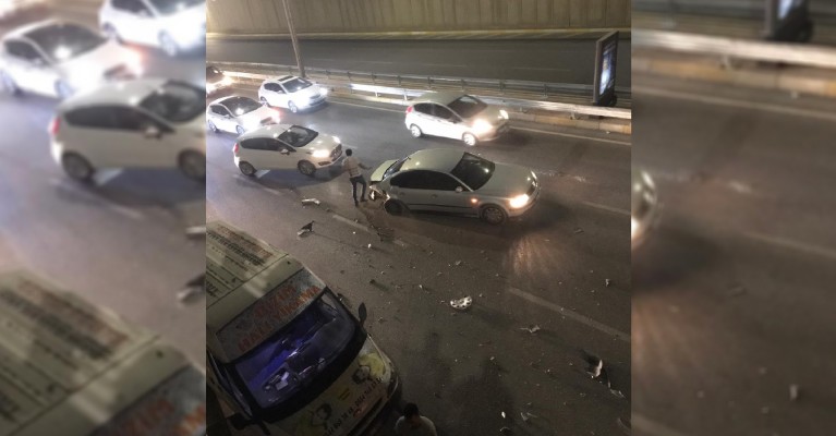 Şehrin trafik akışının en yoğun olduğu noktalardan biri olan alt geçitte kaza nedeniyle trafikte uzun araç kuyrukları oluştu.