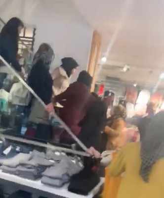 Bir süre sonra kadınlardan birinin mağazadan çıkarılmasıyla kavga sona erdi. O anlar ise cep telefonuyla anbean kaydedildi.