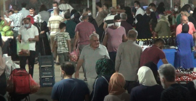 Turgut Özal Parkının yanından pazarda alışveriş yapan vatandaşlar adeta iç içe dururken, büyük bir yoğunluğun yaşandığı görüldü.