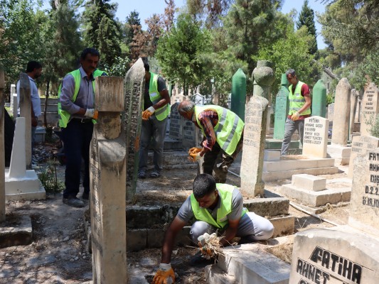 Yaklaşan Kurban Bayramı münasebetiyle kentin farklı noktalarında bulunan mezarlıkları temizleyen Şanlıurfa Büyükşehir Belediyesi ekipleri, mezarlıklardaki yabani otları temizleyerek çiçekleri sulayıp çevre düzenlemesi gibi işlemleri de yapıyor. Böylece mezarlıklar yabani otlardan ve çöplerden arındırılmış oluyor.