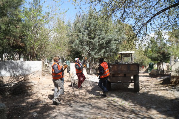 Pandemi süresince temizlik ve dezenfektasyon çalışmalarını aksatmadan yürüten ekipler, vatandaşların mezarlık ziyaretlerini daha rahat yapmaları için merkez ilçe mezarlıklarda temizlik ve bakım çalışması yaptı.