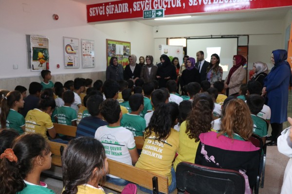 Uygulamada çocuklara çevre kirliliğinin önüne geçmek ve atıkların tekrardan değerlendirilmesine yönelik eğitimler düzenlenirken, programın ardından Başkan Eşi Betül Beyazgül öğrencilere kitap ve hediye setleri dağıttı.