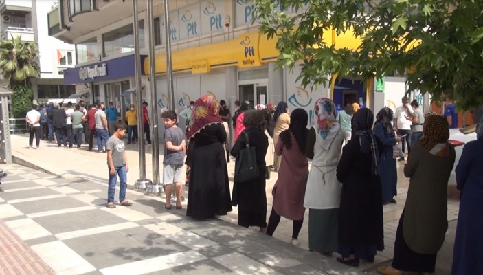 Şanlıurfa'da PTT şubelerinde bugün de vatandaşlar uzun kuyruklar oluşturdu.