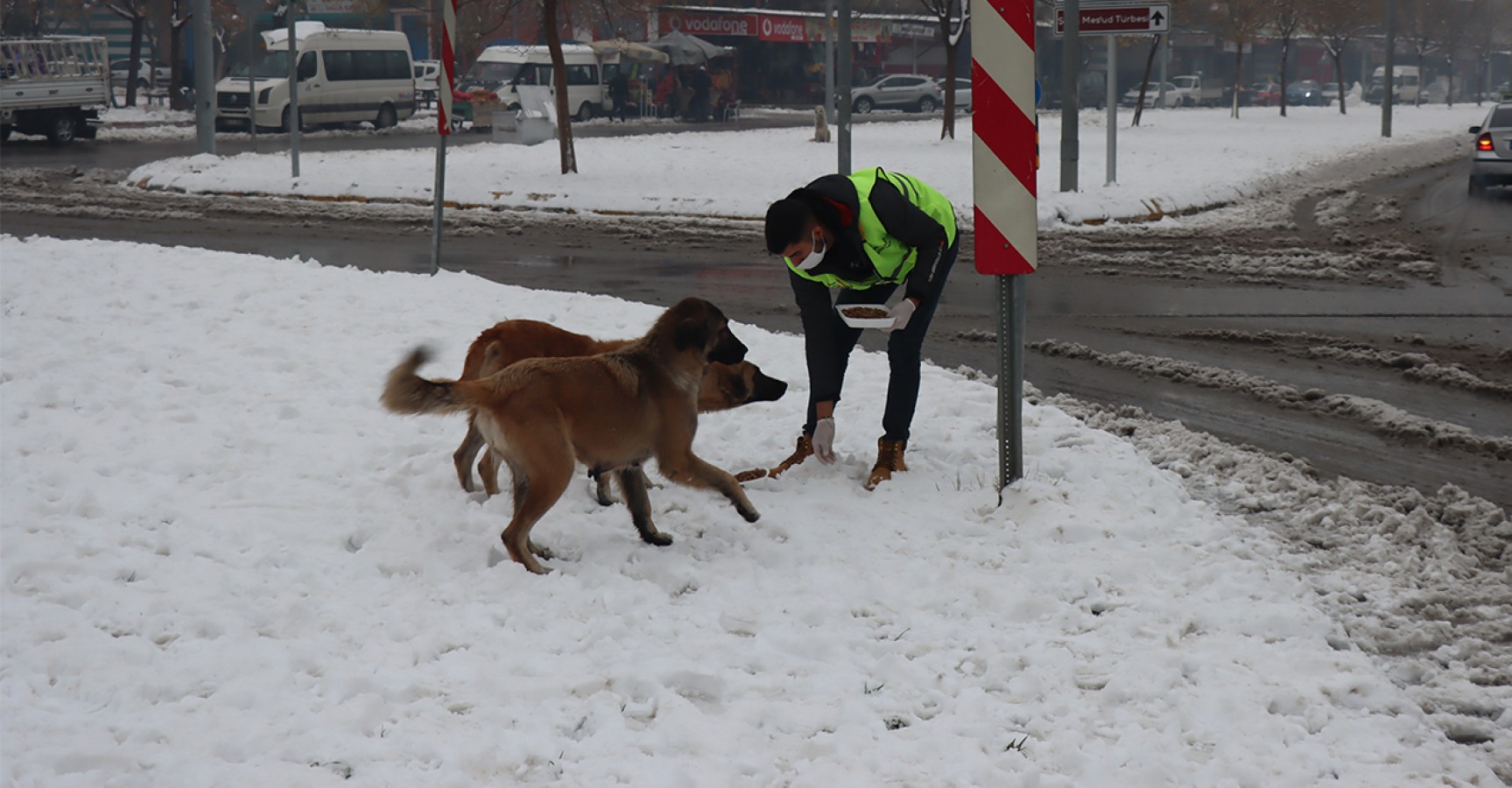 Kar nedeniyle insan sirkülasyonunun azaldığı alanlara giderek sokak hayvanlarına mama ve yem bırakan ekipler bu uygulamayı kış boyunca sürdürecek.