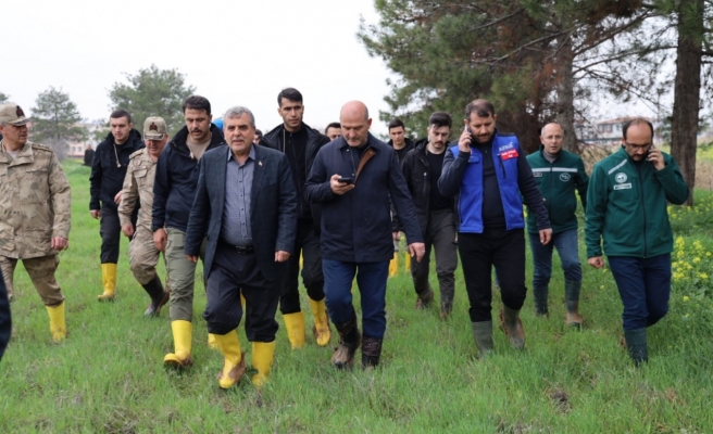 Şanlıurfa Büyükşehir Belediye Başkanı Zeynel Abidin Beyazgül ve Şanlıurfa Valisi Salih Ayhan’dan çalışmalarla ilgili bilgi alan Bakan Soylu Cavsak deresinin taşmasının ardından askeri bölgeye giderek taşkın alanında sürdürülen çalışmaları inceledi.