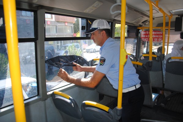 Denetlemelerde toplu taşıma araçlarını kullanan vatandaşlarından gelen şikayet ve istekleri de göz önünde bulunduran Büyükşehir Belediyesi Trafik Zabıta ekipleri, kentte bulunan dolmuş, halk ve belediye otobüslerinde klima, çalışma karnesi, kılık kıyafet, cam film ve sigara denetimini yaparak şoförlere gerekli ceza işlemi ve uyarılarda bulundu.
