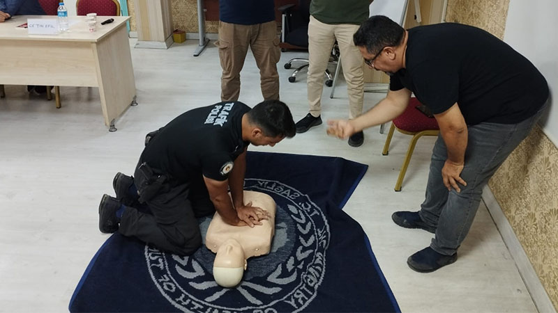 pratik aşamaları olan temel ilkyardım eğitimi verildi.