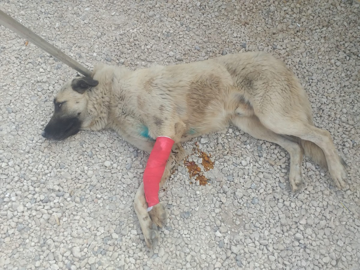 Büyükşehir Belediyesi ekiplerince tedavi altına alınan yaralı köpek,