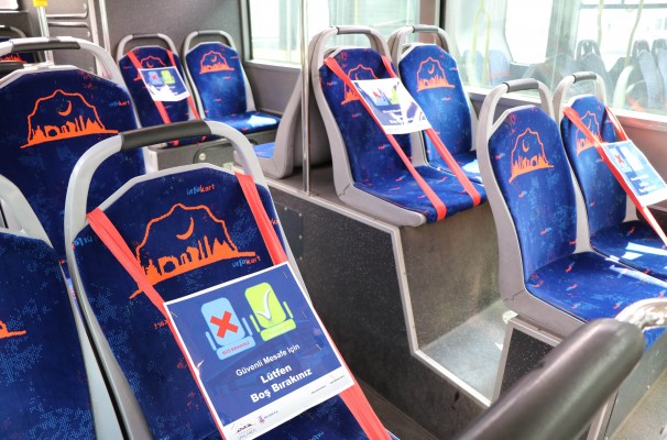 İçişleri Bakanlığının vermiş olduğu kararlar doğrultusunda toplu taşımada araçlarında yeni oturma düzenin gerektirdiklerini yapan Büyükşehir Belediyesi, toplu taşıma araçlarında oturulmaması gereken yerleri şeritle kapattı.