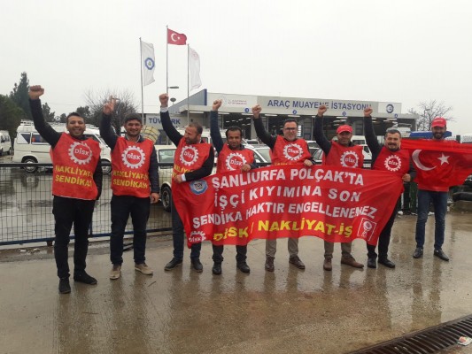Şanlıurfa'daki TÜVTÜRK Araç Muayene İstasyonlarından çıkarılan işçilerin eylemi sürüyor.