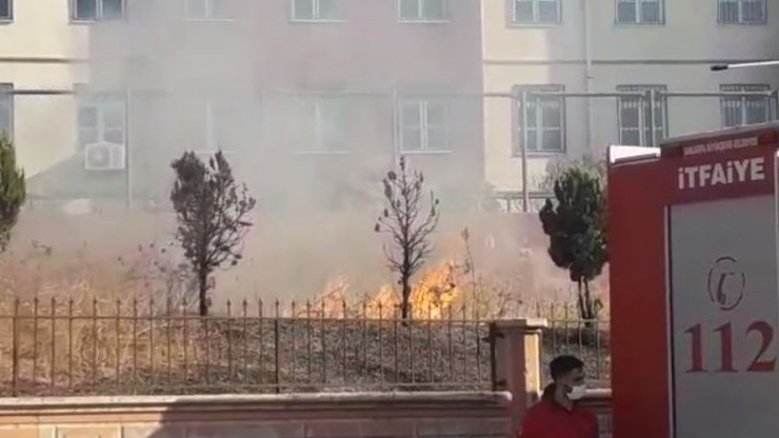 Haliliye İlçesinde okulun bahçesindeki kuru otlar bir anda alev aldı. Kısa sürede kontrol altına alınan yangın, söndürüldü.