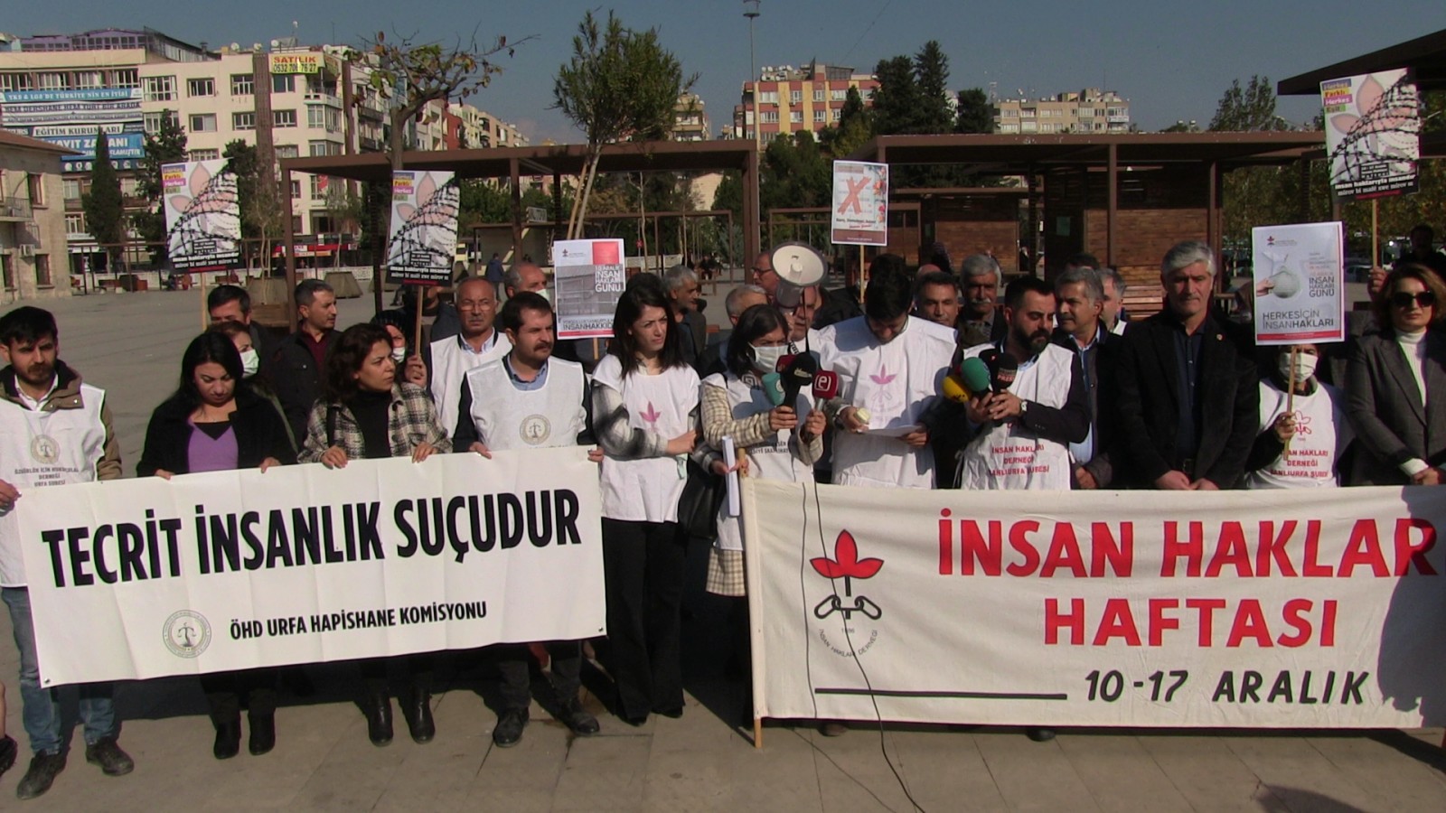 ŞANLIURFA - Şanlıurfa İnsan Hakları Derneği, Özgürlük için Hukukçular Derneği ve Urfa Emek ve Demokrasi Platformu, 10 Aralık Dünya İnsan Hakları Günü dolayısıyla basın açıklaması yaptı.