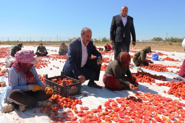 Yalçınkaya beraberinde Belediye Başkan Yardımcısı Halef Karataş ile tarlaya gitti ve işçilerle bir araya gelerek işçilere kolaylık diledi. Çalışmaları da inceleyen Başkan Yalçınkaya hayal projeleri hayat geçirdiklerine dikkat çekerek “Akçakale’de hayal olan şeyleri gerçekleştiriyoruz. Herkes ‘Burada bir şey olmaz’ diyordu. Geçen sene kadın kardeşlerimiz ile burada biber üretimi yaptık. Bu sene çeşitlendirdik. Biberin yanına domatesi koyduk. Domates Amerika, Avrupa ve iç pazara gidiyor. Burada kurutularak doğal halde insanların sofrasına gidiyor. Temiz gıda dünyanın sorunu. Biz de temiz, tabii gıda üretimini kadın kardeşlerimiz gerçekleştiriyorlar ve burada destan yazıyorlar. Güneşin altında hem ekmeklerini kazanıyorlar, üretim yapıyorlar. Buraya büyük bir katkı oldu. 200 kadın kardeşimiz çalışıyor” ifadelerini kullandı.