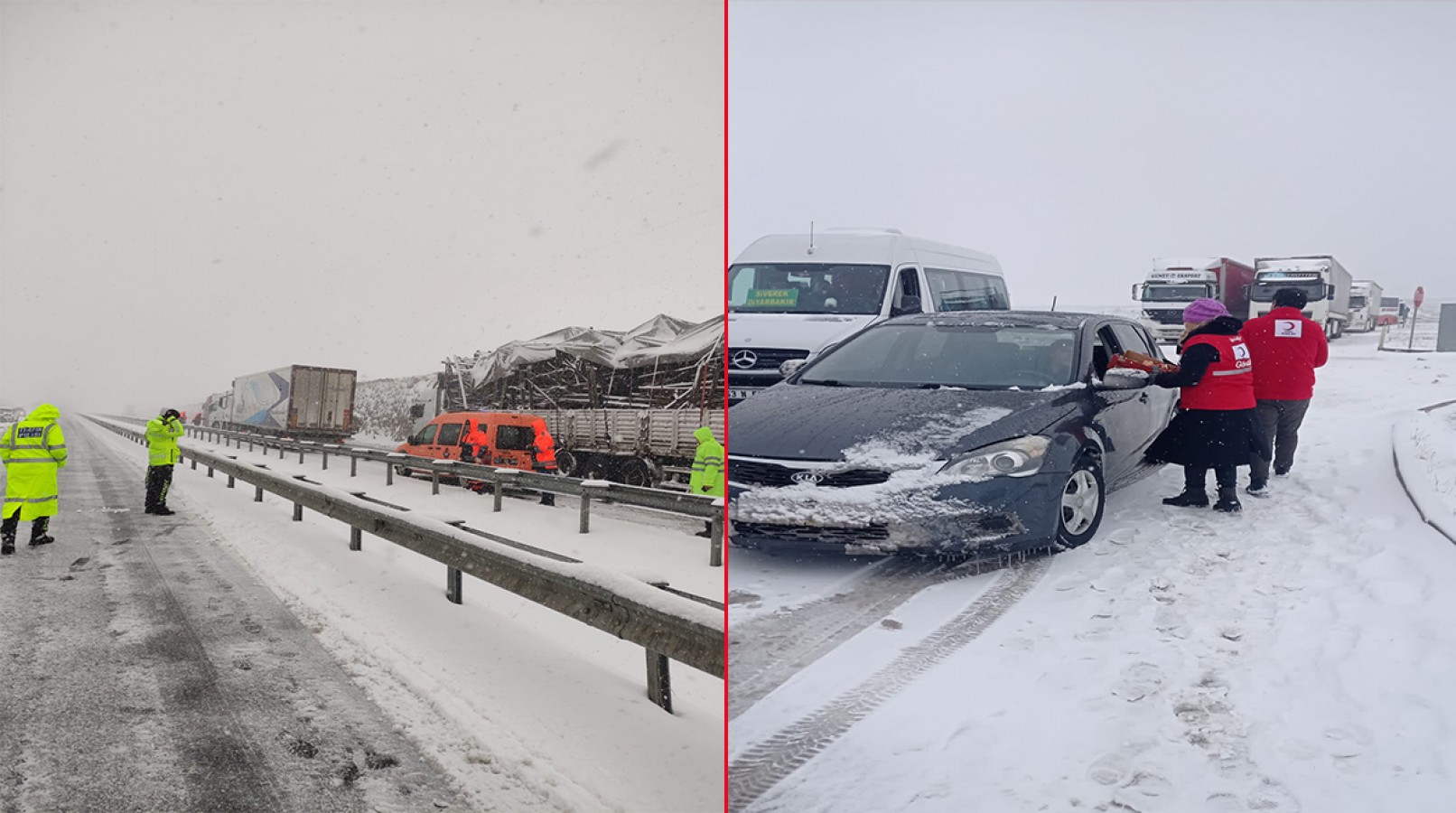 Öte yandan kapanan kara yolunda Kızılay’ın Siverek şubesi yolda kalan vatandaşlara yardıma yiyecek içecek yardımında bulundu.