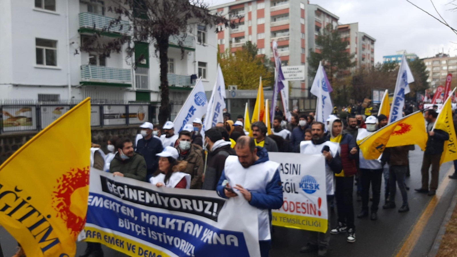Bugün hem İzmir hem Diyarbakır'da “İşsizliğe, yoksulluğa hayır! Emekten, halktan yana bütçe istiyoruz” diyen KESK üyeleri mitinge katıldı. Diyarbakır'da İstasyon Meydanı'nda düzenlenen mitinge diğer bölge illerden ve Şanlıurfa KESK Şubeler Platformu da katılım sağladı. Miting alanına doğru yürüyüş düzenleyen KESK üyeleri ellerinde taşıdıkları pankartlar ile "İnsanca bir yaşam için alanlardayız" mesajı verdi.