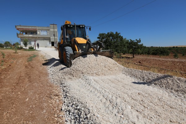 Haliliye Belediyesi Fen İşleri Müdürlüğüne bağlı ekipler, Yukarıakören Mahallesinde başlattıkları yol yapım çalışmalarına devam ediyor.