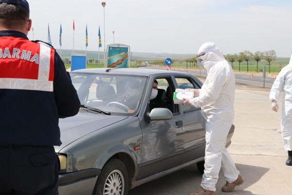 Koronavirüs salgınına karşı tedbir ve denetimlerin artırıldığı Şanlıurfa’da, tüm ilçe giriş çıkışlarında kontrol noktaları oluşturulmuştu. Şehirlerarası seyahat eden vatandaşların seyahat izin belgelerini sorgulayan Polis ve Jandarma timleri, araçlarda uyulması gereken sosyal mesafe kurallarını da denetiyor. Kurallara uymayanlara cezai işlem uygulayan görevliler, vatandaşların ateşlerini ölçüp, maskesi olmayanlara maske veriyor.