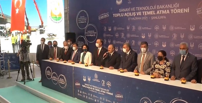 Şanlıurfa'da, Sanayi ve Teknoloji Bakanlığınca desteklenen 67 milyon TL’lik 5 projenin toplu açılış ve temel atma töreni Bakan Mustafa Varank’ın katılımıyla yapıldı.