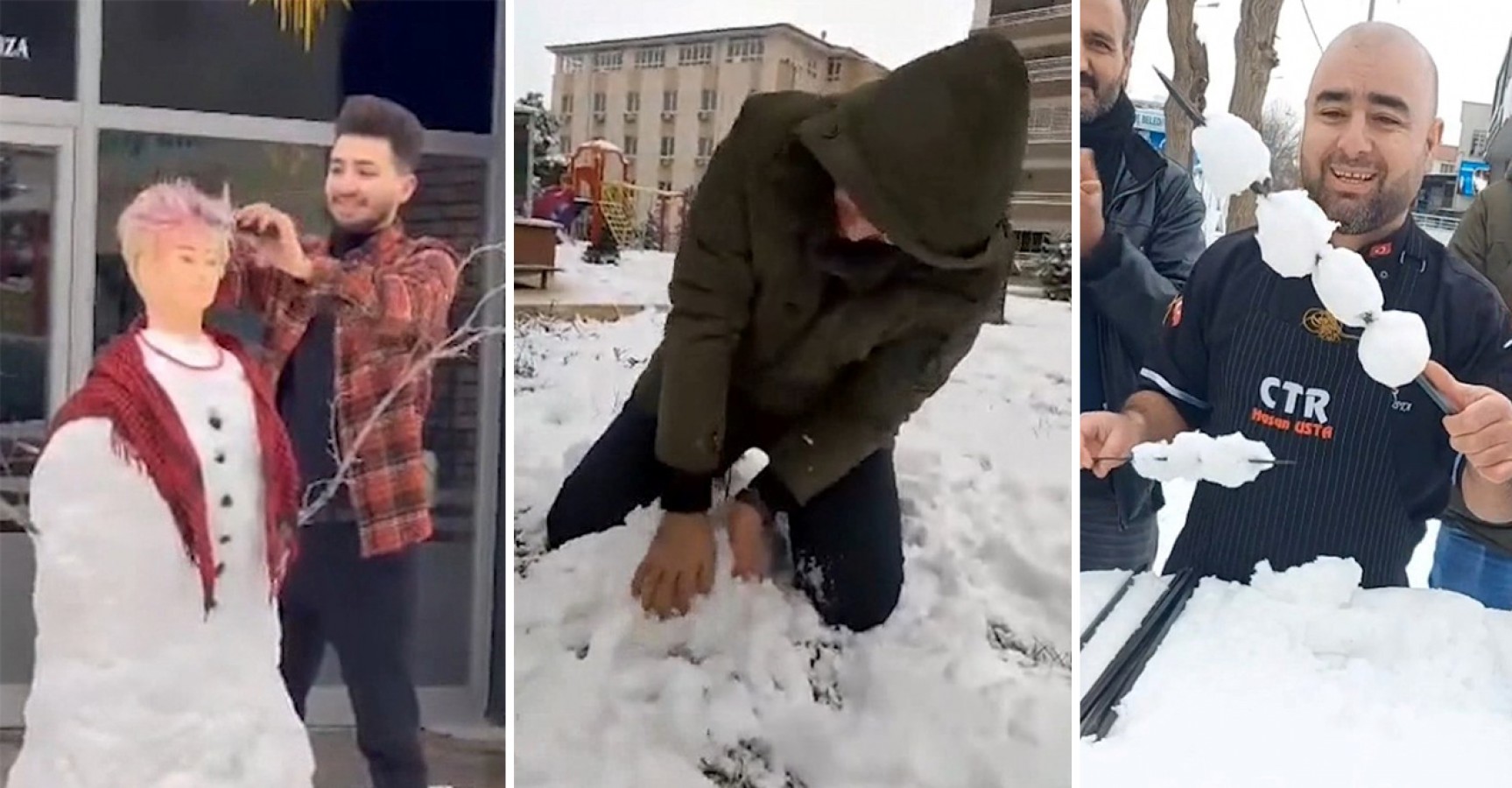 Kentte, bir kişi sokakta yapılan kardan adamın başına peruk takıp saçını kesti. Gülümseten paylaşımlardan birinde de bir lokantacı, kartoplarını şişe saplayarak kebap yaptı. Başka bir kullanıcı da müzik eşliğinde çiğ köfte yapar gibi kar yoğurdu.