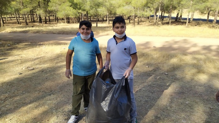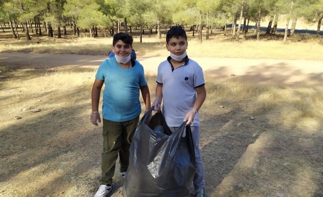 Kentteki sayılı yeşil alanlardan biri olan Kent Ormanına giden Şanlıurfalı gençler, buradaki çöpleri toplayarak temizlik yaptı.