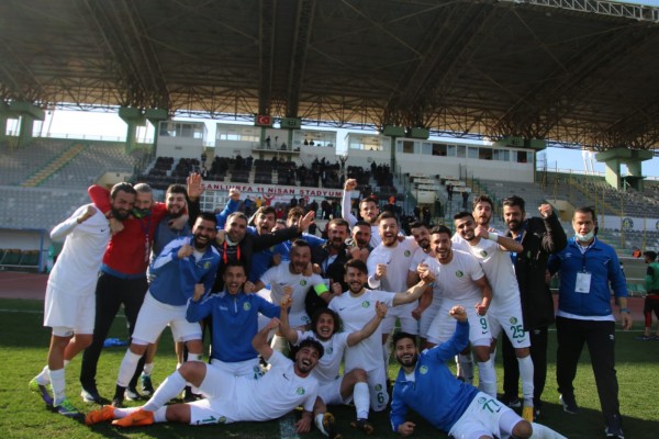 TFF 2. Lig Beyaz Grup’ta mücadele eden Şanlıurfaspor, ligin 22’nci haftasında sahasında konuk ettiği Amedspor’u 2-1 mağlup etti. 18’inci dakikada Fevzi Özkan (P) ve 90+2’de Gökdeniz Varol’un kaydettiği gollerle sahadan 2-1 galip ayrılan Sarı-Yeşilli takımda, maç sonu büyük sevinç yaşandı. Teknik heyet ve oyuncular, galibiyet sevincini karşılaşmayı protokol tribününde izleyenlerle paylaştı. Büyük mutluluk yaşayan futbolcu ve teknik heyetin, saha ortasında da objektiflere zafer pozu verdikleri görüldü.