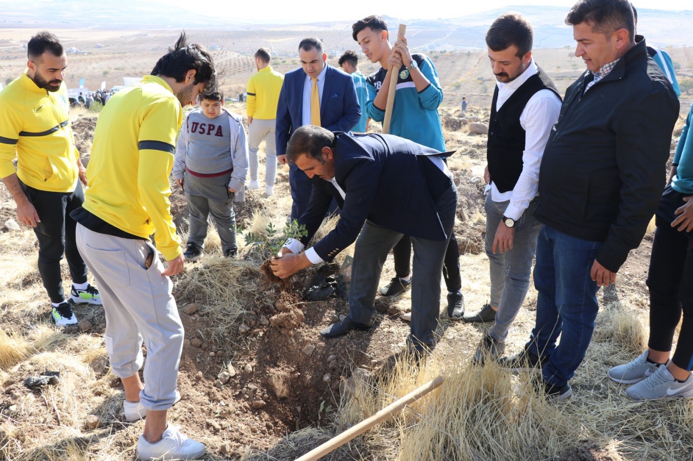Şanlıurfa Valiliği ve Büyükşehir Belediyesi ile birlikte paydaş kurumların destek verdiği kampanyada yer alan Şanlıurfaspor Kulübü yöneticileri ve futbolcuları fidan dikti.