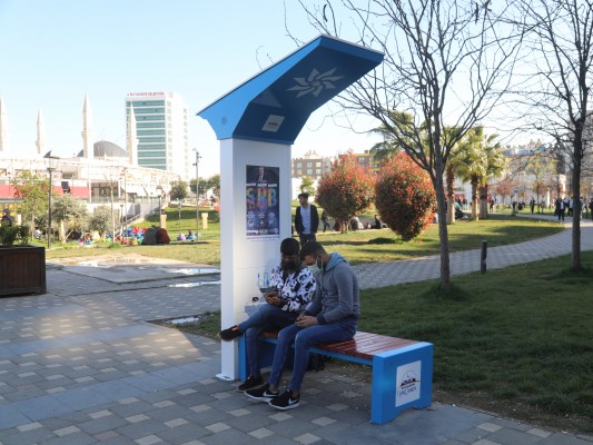 Güneşi en fazla alan illerden biri olan Şanlıurfa’da Büyükşehir Belediyesi Akıllı şehircilik ve inovasyon Şube Müdürlüğü tarafından başlatılan güneş enerjisiyle çalışan “Şarj Eden Akıllı Bank” uygulamaları, kentte üç farklı pilot bölge seçilerek vatandaşların hizmetine sunuldu. Şanlıurfa’da halkın yoğun olarak kullandığı alanlardan Novada AVM önü, Kasaptaşı Parkı ve Turgut Özal Parkında hizmete sunulan ve güneş enerjisi ile çalışan akıllı banklar özellikle gençler tarafından çok beğenildi.
