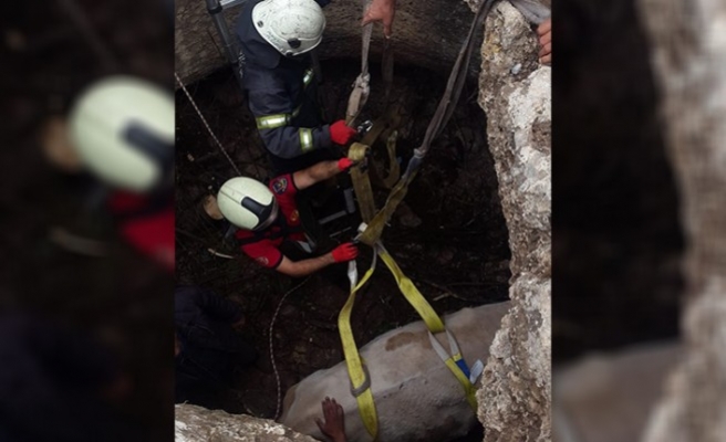 Keçeli Mahallesinde bulunan sarnıca düşen inek, Şanlıurfa Belediyesi İtfaiye Ekipleri tarafından kurtarıldı.