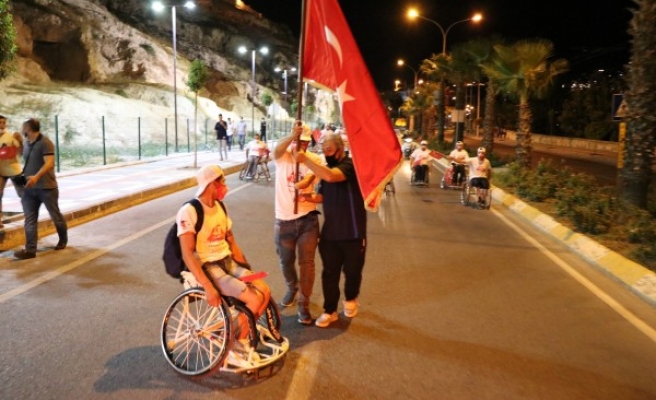 Sosyal mesafe kurallarına riayet edilerek gerçekleştirilen koşuda sporcular Milli birlik ve mücadele mesajı verdi. Koşunun bitişini özel sporlar yaparken gençler ellerindeki Türk Bayraklarını sallayarak onlara destek verdi.