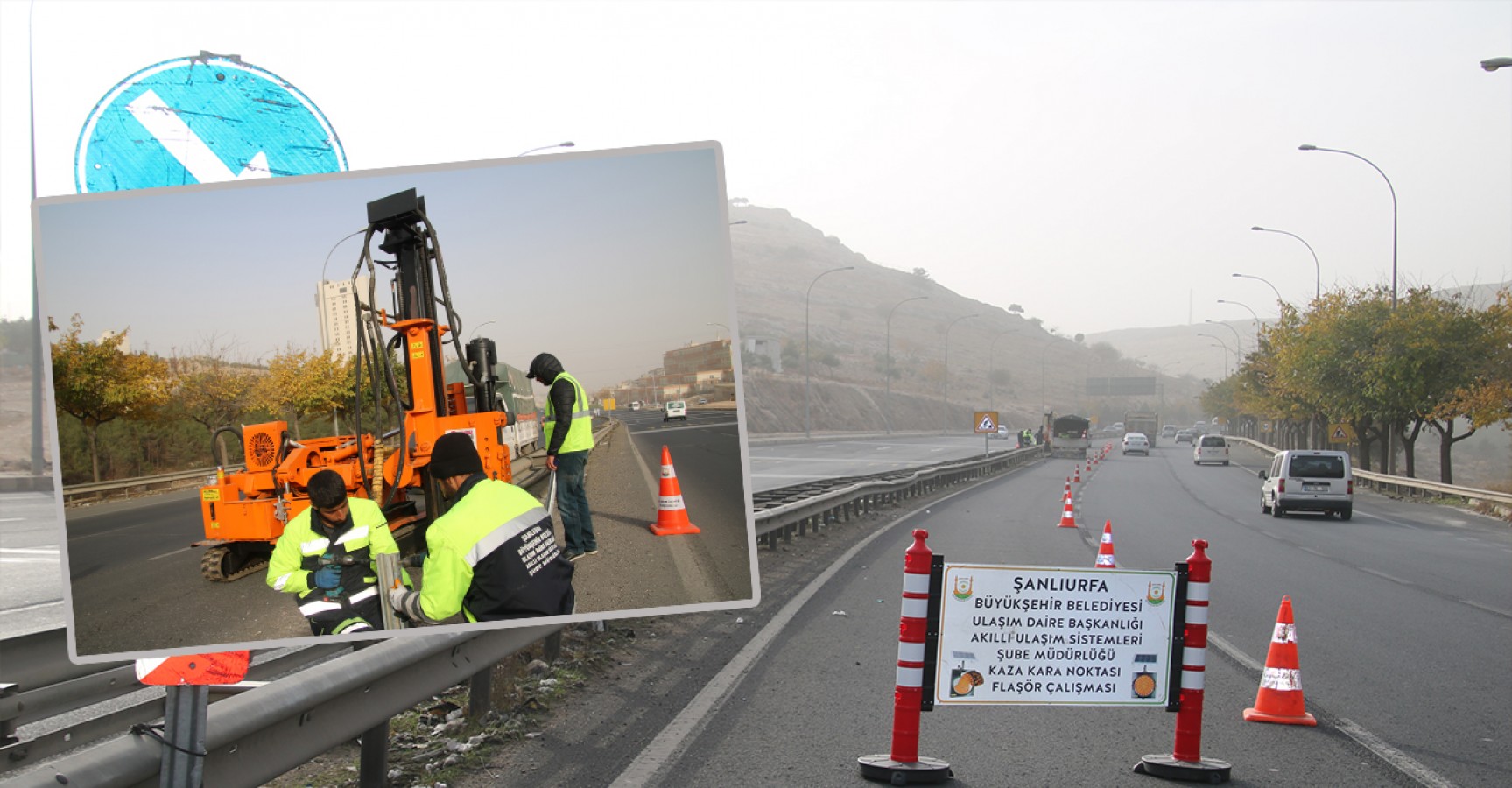 Kazalardan dolayı deforme olan bariyerleri yenileriyle değiştiren ekipler, sürücülerin kara yolunu kullanırken daha dikkatli olmaları sağlamak adına yola uyarıcı nitelikte olan flaşör monte etmeye başladı.