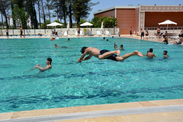 Şanlıurfa kara yolundaki olimpik standartlardaki yüzme havuzu ve sosyal tesisler, düzenli olarak dezenfekte edilirken günlük yaklaşık 500 kişiyi ağırlıyor.