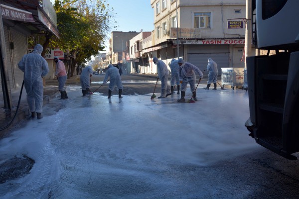 Hafta içi vatandaşların yoğun kullandıkları alanlar dezenfekte edilirken, hafta sonu kısıtlamalarında ise ilaç ve köpük karışımından hazırlanan solüsyonla cadde, sokak ve meydanlar yıkanıyor.