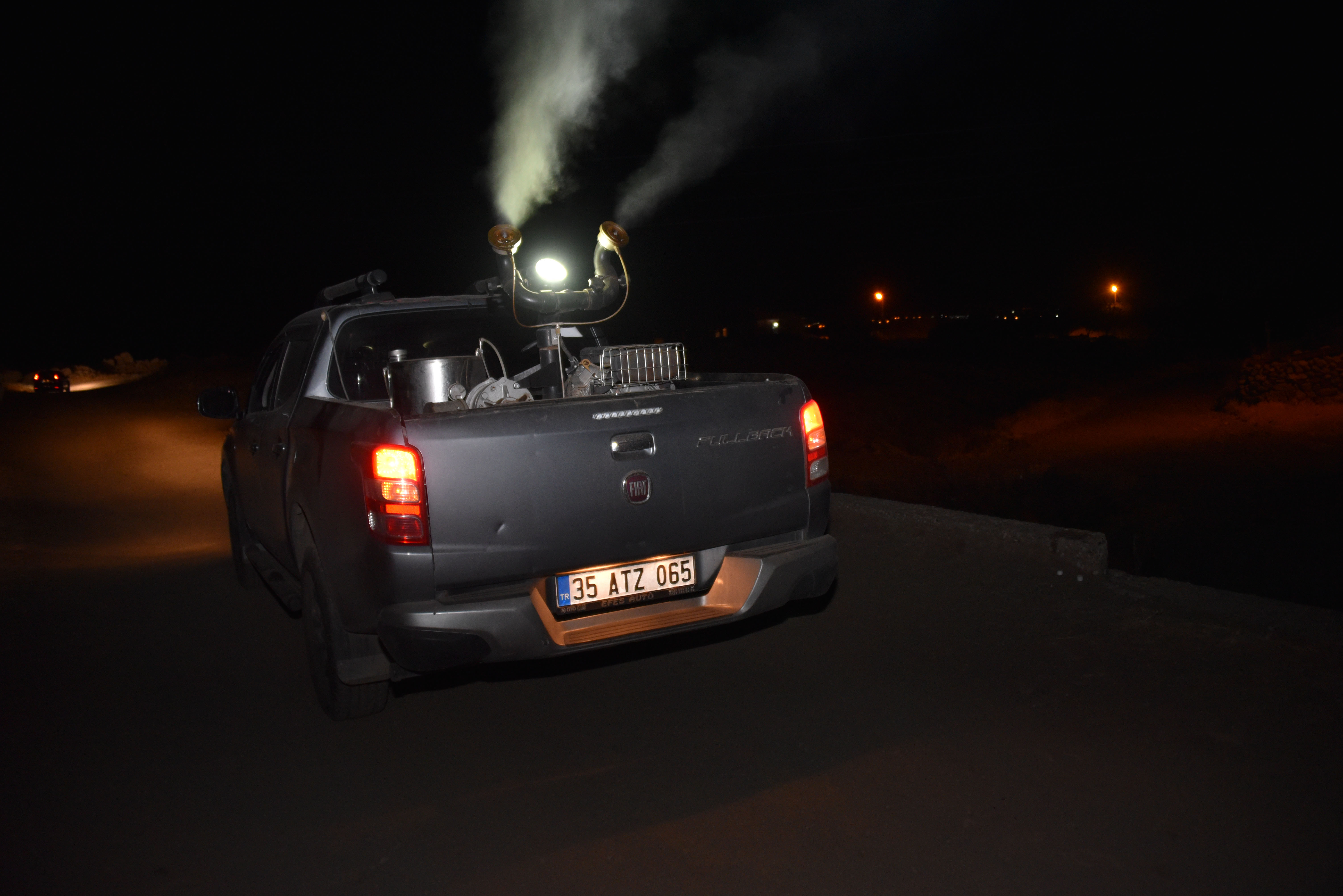 159 muhtarlığa bağlı mahalle ve sokakta 6 araçla sabahın ilk ışıklarına kadar sivri sinek ve çeşitli haşerelere karşı ilaçlama yapan ekipler, belirli periyotlarla tüm mahallelerde çalışma yapıyor.