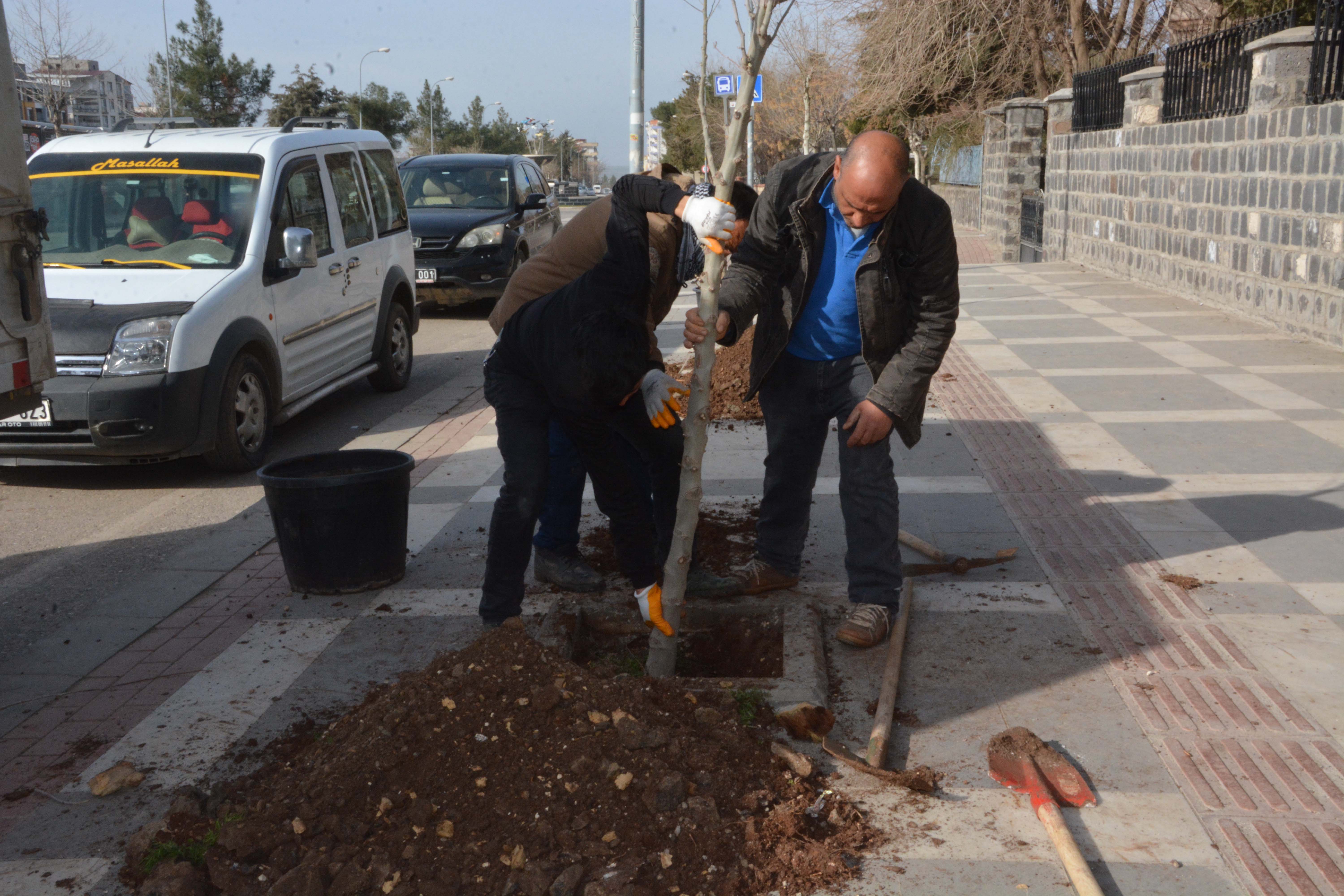 Park ve Bahçeler Müdürlüğü Mustafa Remzi Bucak Bulvarı ile kentin farklı noktalarındaki cadde ve refüjlerde çeşitli nedenlerle zarar gören ağaçların yerine yenilerini dikiyor.