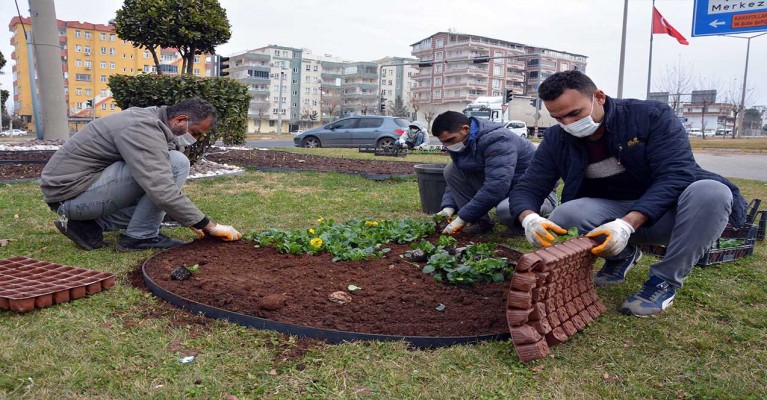 Park ve Bahçeler Müdürlüğü ekipleri İlçe genelinde park ve yeşil alanlar olmak üzere karayolundaki kavşaklar ile refüjleri menekşeyle süslemeye devam ediyor.