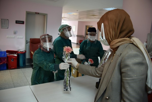 Siverek Belediye Başkanı Ayşe Çakmak ve AK Parti Şanlıurfa İl Kadın Kolları Başkanlığı sağlık çalışanlarını ziyaret ederek karanfil dağıttı.