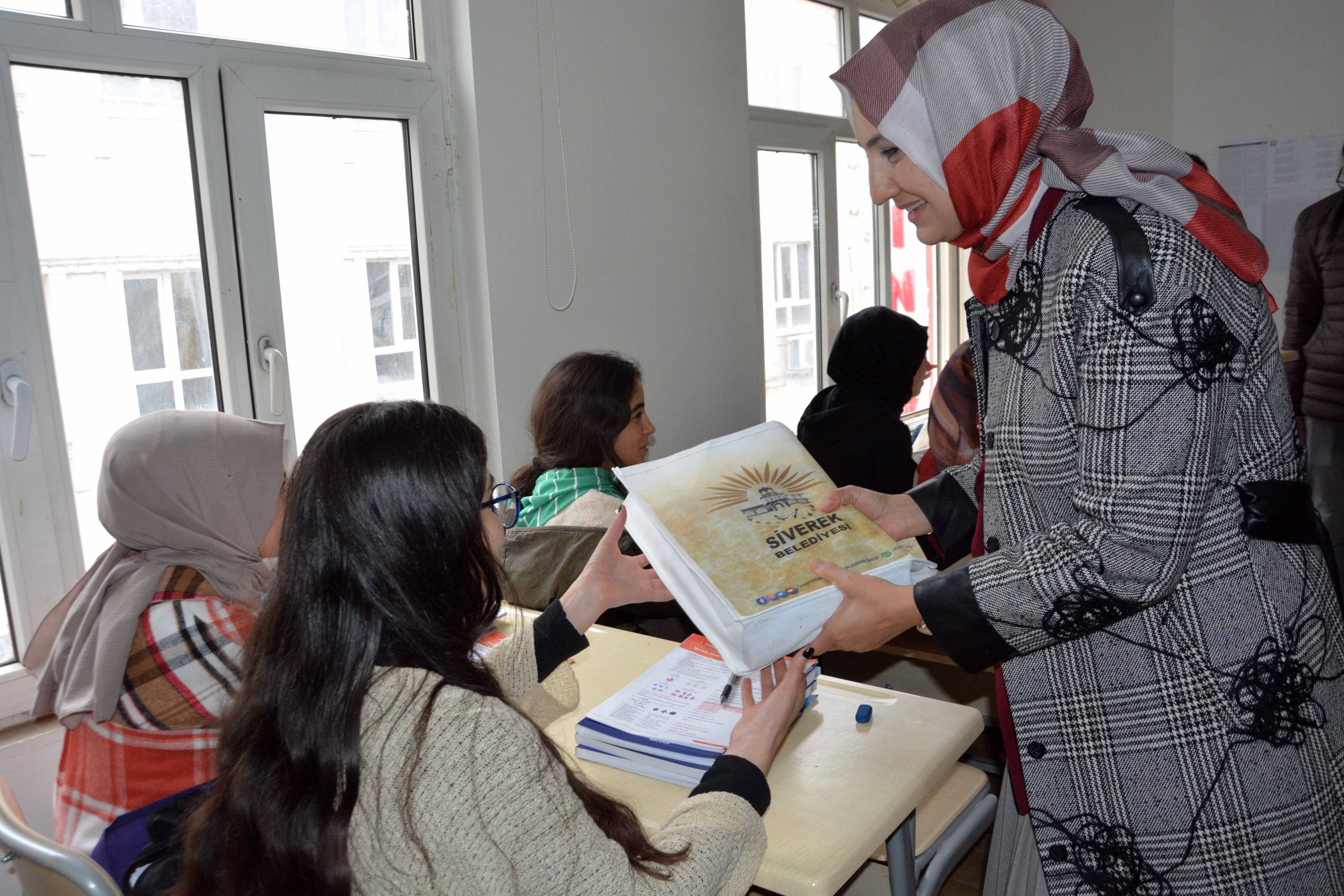 SİVEREK -Gençlik merkezinde öğrencilerin taleplerini dinleyen Başkan Çakmak, Yüksek Öğretim Kurumlar sınavı (YKS) hazırlanan öğrencilere TYT ve AYT kitap setlerini dağıttı.