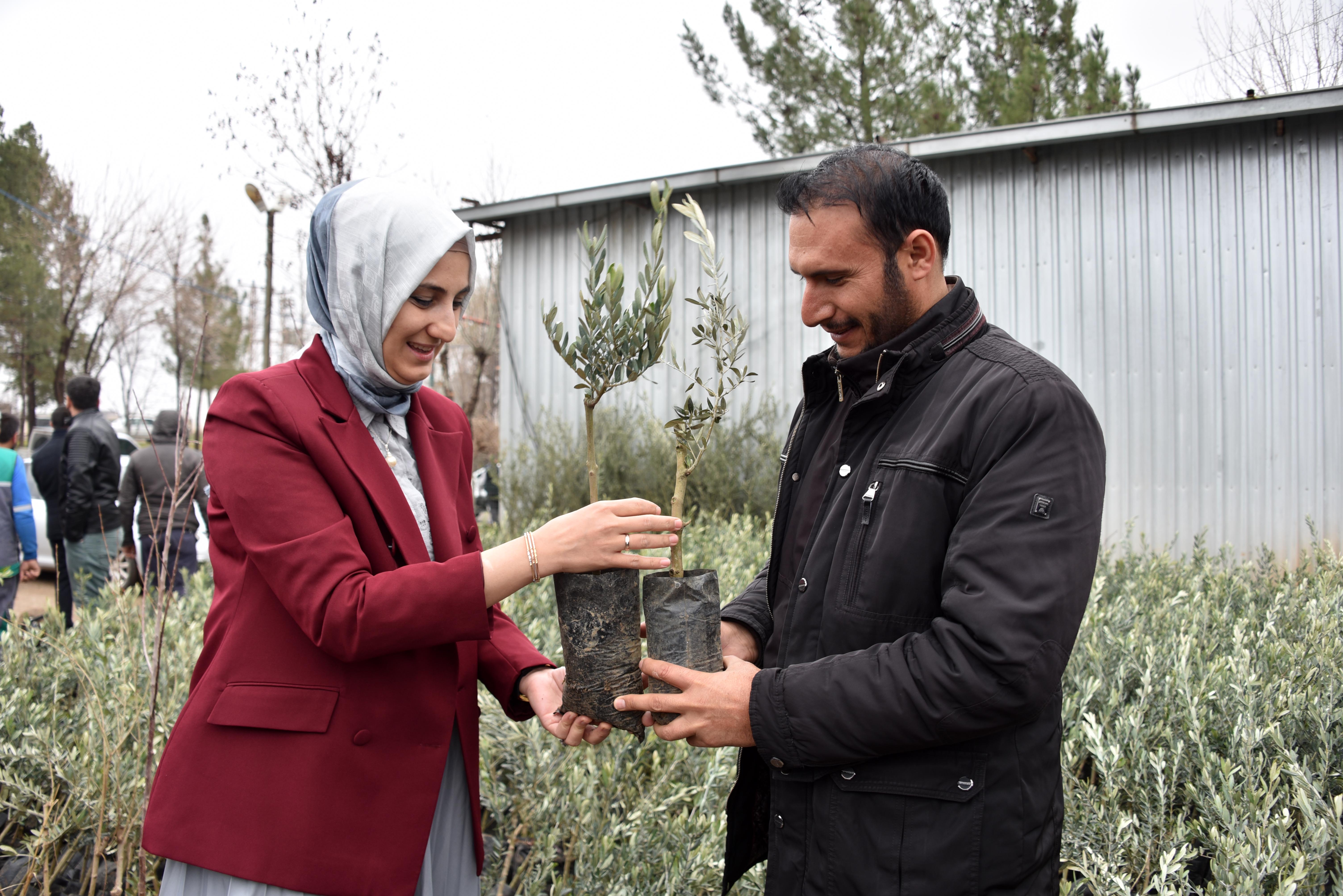 zeytin, badem, cevizin olduğu 25 bin fidan dağıttı.