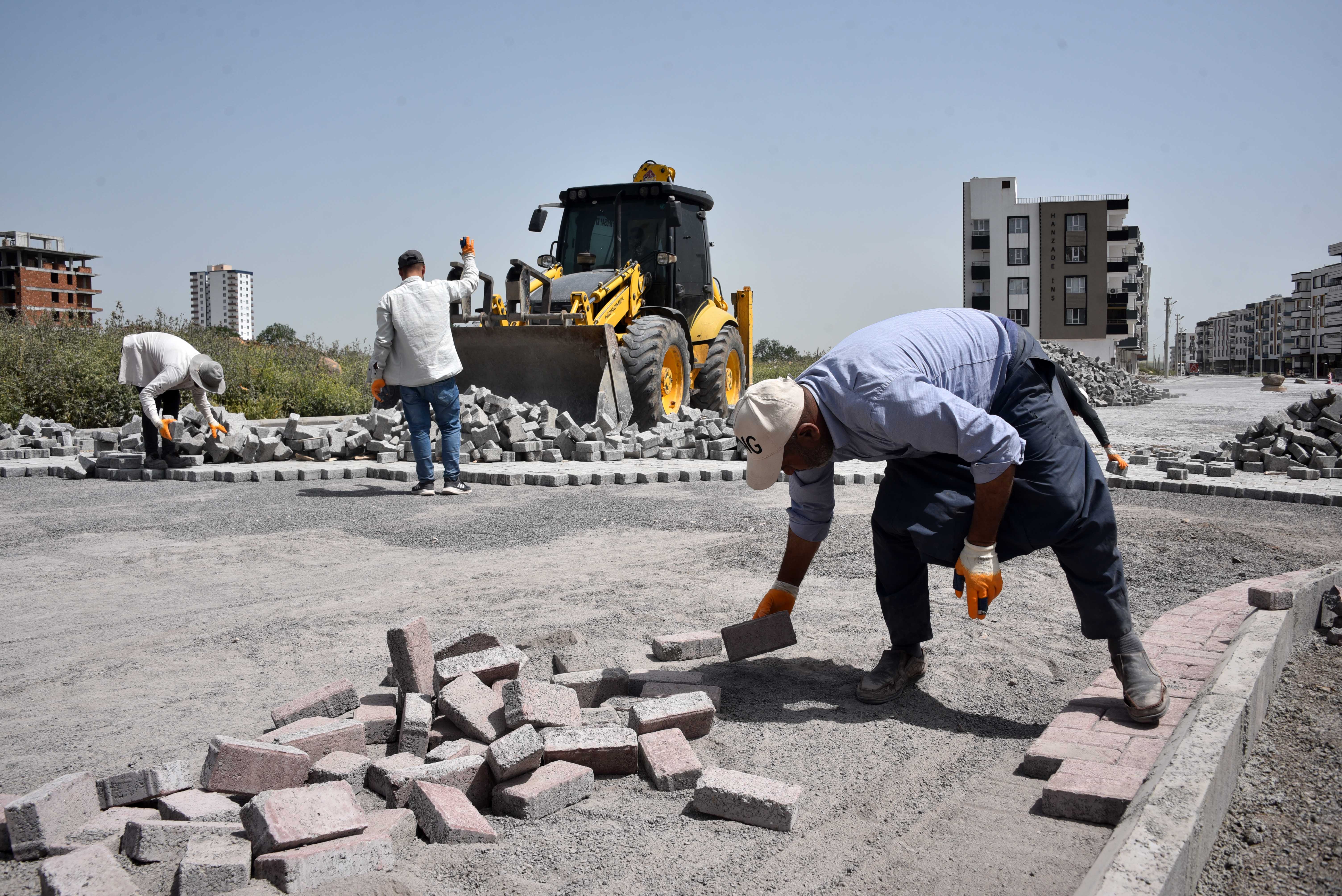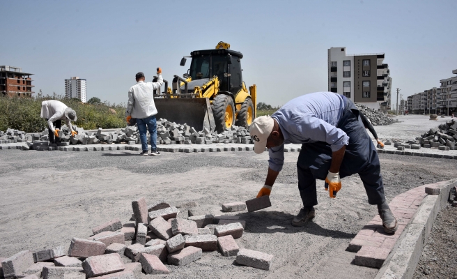 Siverek Belediyesi, ilçenin en büyük mahalleleri arasında yer alan Ayvanat Mahallesinde yerleşimin tamamlandığı cadde ve sokaklarda kilitli parke taşı döşüyor.