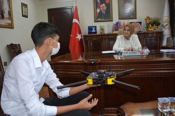 Makamında öğrencileri ağırlamaktan gurur duyduğunu belirten Çakmak, “Gurur abidemiz olan gençlerimiz başarı sağlayarak kendi çabalarıyla tasarladıkları İnsansız İHA yakından inceleme fırsatım oldu. Gençlerimizin her zaman destekçisi olacağız bizleri yarı finale taşıyan genç öğrencilerime çok teşekkür ediyorum. İnşallah TEKNOFEST tarafından Bursa’da düzenlenecek olan yarı finalle de başarı sağlayarak ilimizi ilçemize güzel bir şekilde temsil ederler” ifadelerini kullandı.