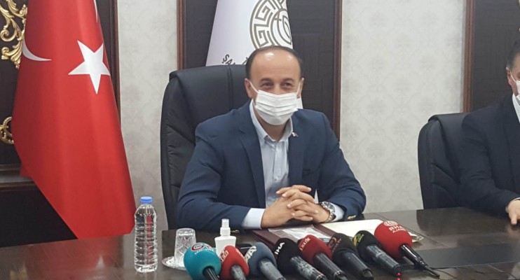 Şanlıurfa Valisi Abdullah Erin Valilik toplantı salonunda pandemi sürecinde il genelinde yürütülen çalışmalar ve gelinen nokta hakkında basın toplantısı düzenledi.