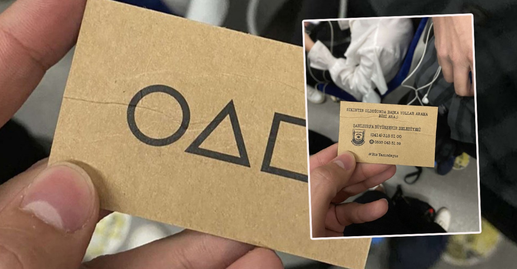 Belediye tarafından dağıtılan kartın arka yüzünde irtibat numaralarının yanı sıra “Sıkıntın olduğunda başka yollar arama bizi ara” notu dikkati çekiyor. Peki Squid Game’den esinlenen bu kartlar Urfa’da niye dağıtılıyor? Merak konusu olan bu sorunun yanıtını Şanlıurfa Büyükşehir Belediyesi verdi.