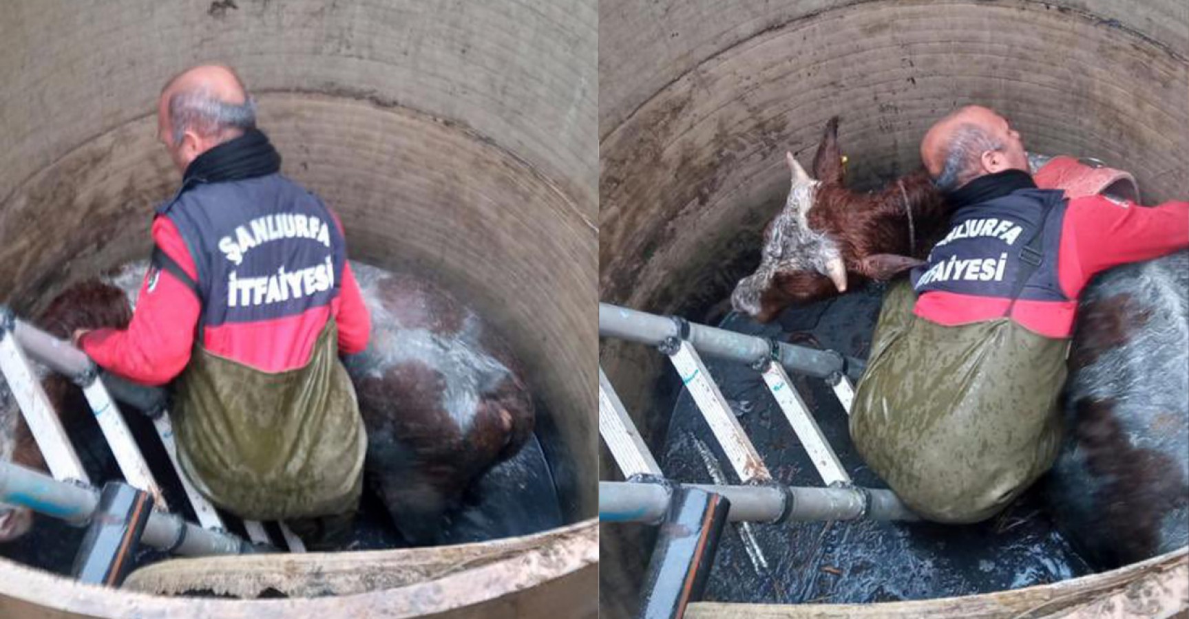İhbar üzerine olay yerine gelen itfaiyenin arama kurtarma birimi, su kanalına düşen ineği kurtarmak için çalışma yaptı. Ekipler halat yardımı ile kısa sürede ineği düştüğü yerden kurtardı.