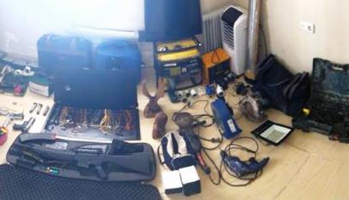1 adet oremec marka kaynak makinası, 1 adet 1kğ’lık yangın söndürme tüpü, 1 adet demir iş markalı akü şarj aleti, 6 adet taşlı erkek yüzüğü, 7 adet kol saati, 9 adet akıllı cep telefonu,  1 adet vodafon marka tablet,  42 adet maddi değeri bulunan tespih,    3 adet balltech marka güvenlik kamerası, 1 adet kartal figürlü ahşap oyma eşya, 4 adet premier marka hoparlör, 1 adet grundig marka lcd televizyon,1 adet tv ünitesi, 1 adet astrong marka jeneratör, 1 adet elektrikli petekli ısıtıcı 1 adet akü, 1 adet proxxon marka regülatör, 2 adet vodafon marka wifi, 1 adet bosch marka hilti, 1 adet flooldlıght marka jeneratör, 1 adet altus marka klima motoru ve klima iç ünitesi, 1 adet sarı renkli peugeot marka motosiklet, 1 adet vestel marka monitör, 1 adet scarlet marka buhar makinesi, 1 adet arçelik marka ayaklı klima, 1 adet interver generatör 2000 marka jeneratör,2 adet elektrikli ısıtıcı, 1 adet 1 tb hard disk, 1 adet mavi su sayacı,5 adet güvenlik kamerası, 1 adet matkap, 1 adet bun marka fan, 18 adet cep telefonu kılıfı, 3 adet otomobil teybi, 1 adet kaset çalar, 1 adet osova marka amfi, 1 adet doğan marka kaynak makinası, 1 adet araç yıkama su makinesi tabancası,  1 adet ahşap duvar saati, 1 adet lehim makine seti, 1 adet cam akvaryum ve 1 adet robo marka el feneri ele geçirildi.